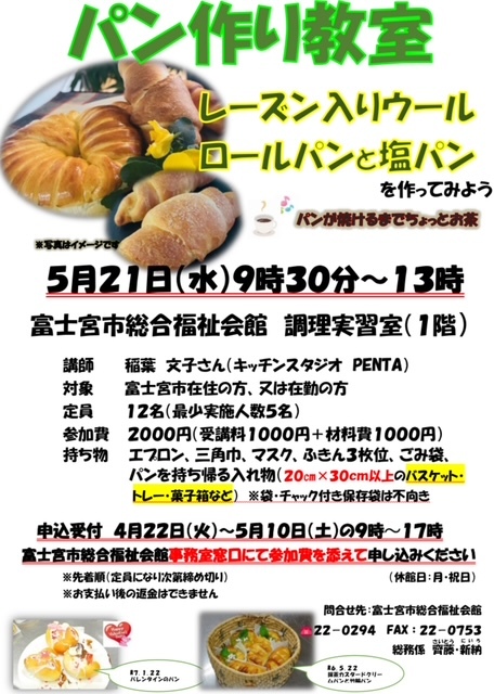 5月21日 福祉会館 ●レーズン入りウールロールパン